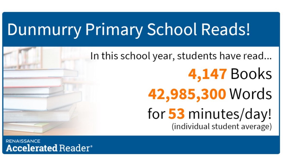 We love the Accelerated Reading Scheme in Dunmurry Primary School. It motivates children to read for certificates as well as for enjoyment.